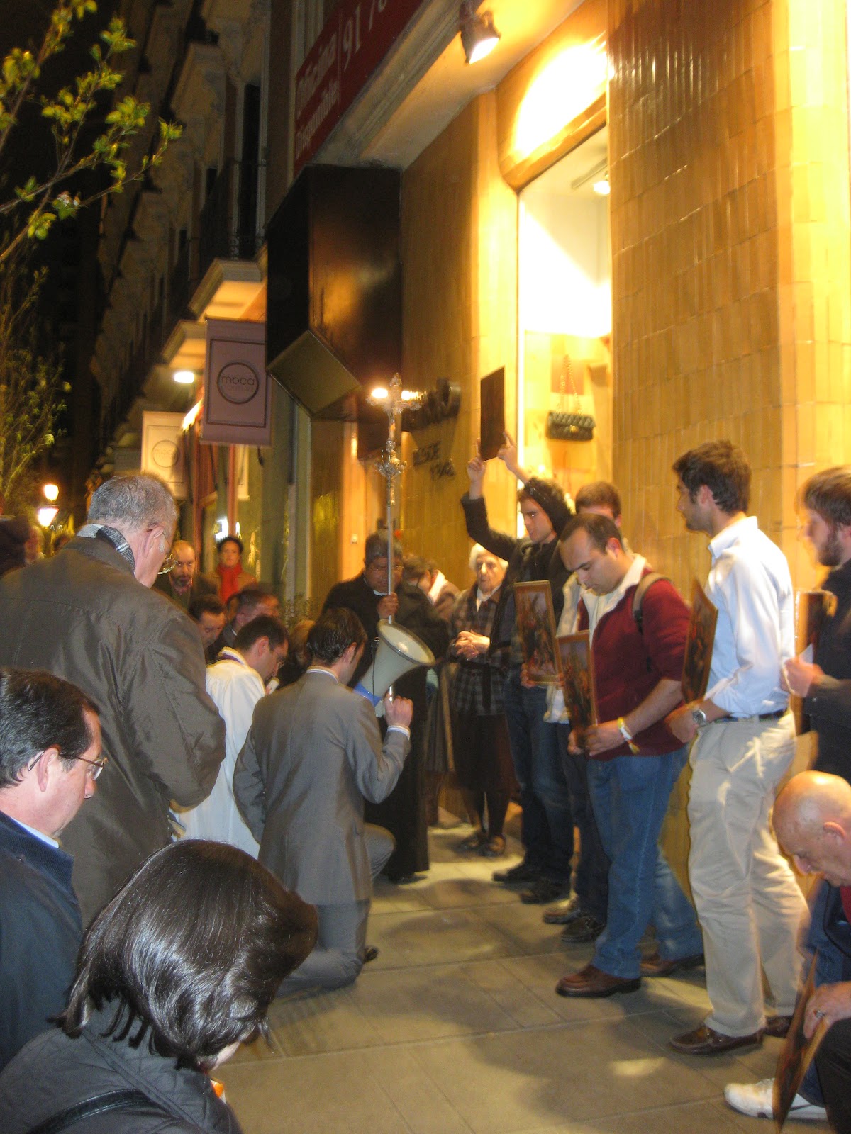 Tras el rezo del Santo Vía Crucis y de las oraciones habituales para la obtención de la indulgencia plenaria –a las cinco yagas de Nuestro Señor y por el Papa- se cantó el Christus Vincit para gloriar a Dios Nuestro Señor por haber permitido que la exposición blasfema fuera retirada antes de lo previsto.