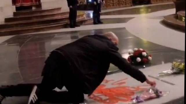 En el día de hoy un individuo llamado Enrique Tenreiro con la complicidad de un periodista que se llama Pedro Armesto han pintarrajeado la tumba del Generalísimo Franco en el Valle de los Caídos.