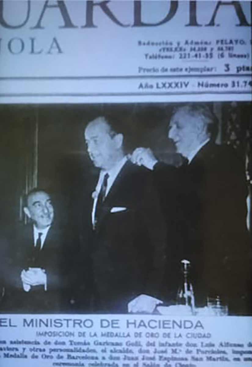 —El hombre que está hoy al frente del departamento de Hacienda —proclamó el alcalde en el histórico Salón de Ciento— ha dedicado siempre, ya en su etapa en la delegación de Hacienda de Barcelona y posteriormente en el ministerio, una atención singular hacia los problemas de la ciudad condal para los que ha mostrado siempre comprensión y un trato preferencial.